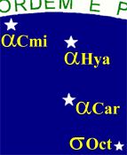 Cão Menor, Hidra Fêmea, Virgem, Carina e Oitante (CMi, Hya, Vir, Car e Oct)